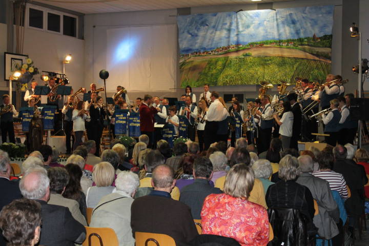 Rund 280 Gäste lauschen dem Konzert zum Auftakt der 50 jährigen Jubiläumsfeier des Musikvereins.