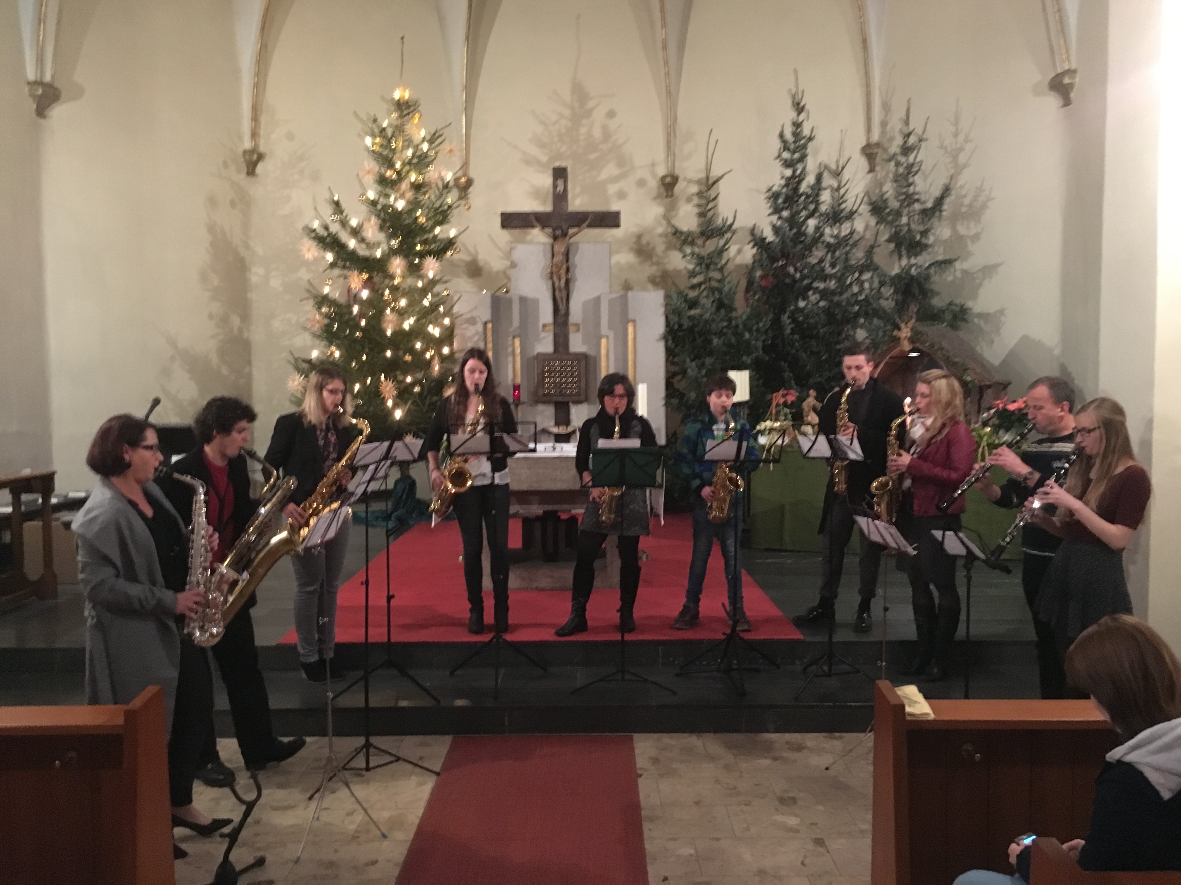 Auch in diesem Jahr musizierten einige Musiker des Musikvereins vor der Christmette in der Kirche. Im jährlichen Wechsel spielen die Blechbläser oder das Holzregister. In diesem Jahr war des Holzregister an der Reihe. Mit einigen weihnachtlichen Liedern wurden die Kirchenbesucher auf die Christmette eingestimmt.